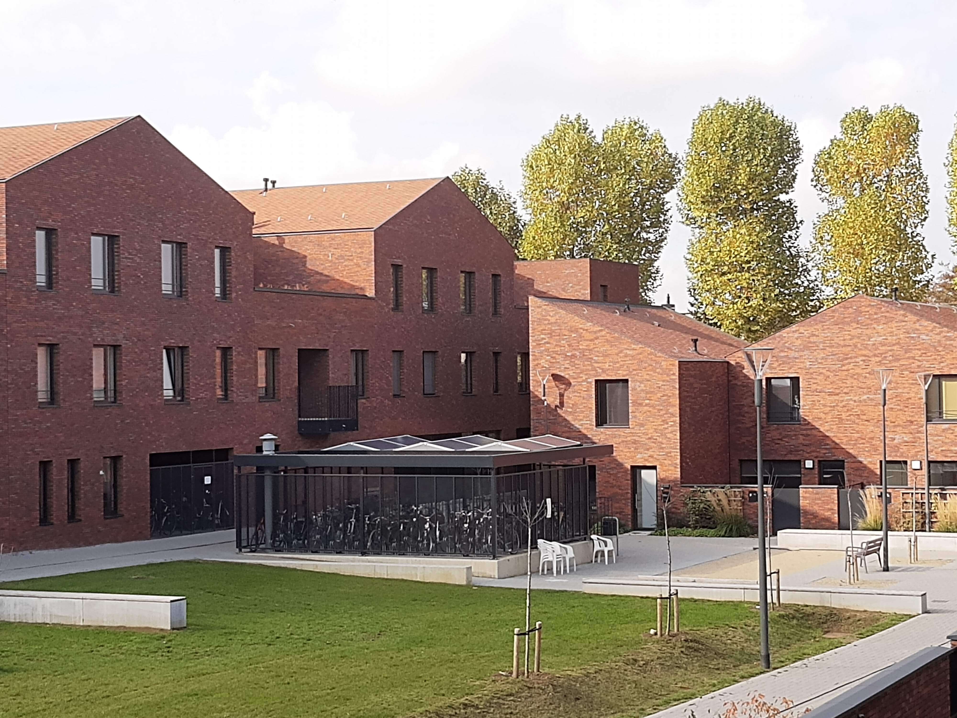 2 appartementsblokken op een gemeenschappelijke kelder, gegroepeerde woningen, niet onderkelderde appartementsblokken.